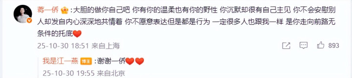 温柔的李晟说,“姐妹们都在”,酷酷的蒋一侨表示,“大胆做自己”,不得不说,同为女性,她们的安慰真的很有力量。