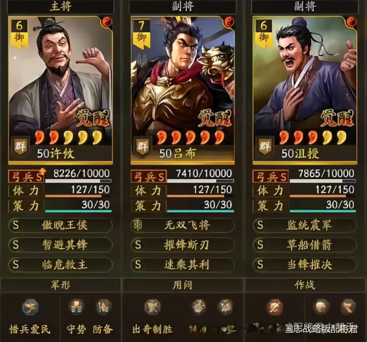 吕布:摧锋断刃+速乘其利(全武+10速度)-无双必备