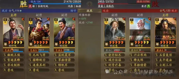 三战中很多兄弟的吕布都有着比较高的红度,传统的三势吕配置还是差点意思,目前最火的还是“温候弓”的玩法居多,不过强度方面可能略逊色于本期的“纵横弓”配置,单场运气成分较大,在高整区环境下连穿表现才是一个队伍强度的最大肯定!话不多说,一起来看看这个阵容是如何在战场横扫对手,狂揽横幅战绩的吧!